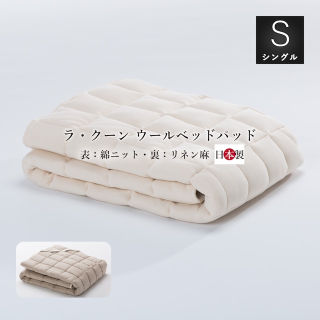 羊毛ベッドパッド シングルサイズ 綿ニット・リネン麻 リバーシブル 日本製 ウォッシャブル仕様
