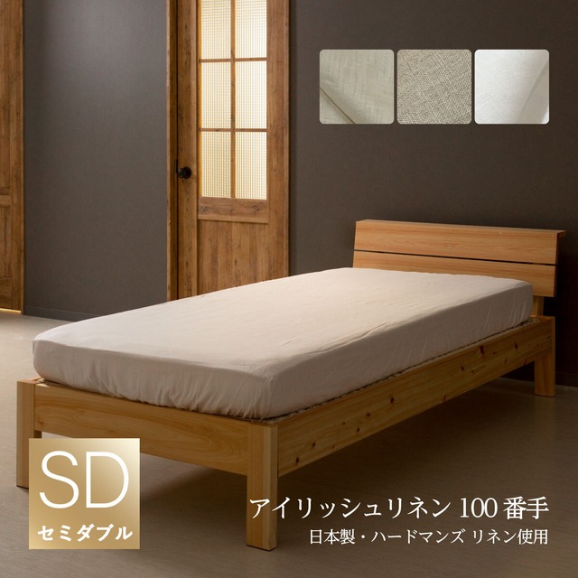 【厚み25〜35cm対応】アイリッシュリネン100番手ボックスシーツ セミダブル サイズ 深型 120×200×40cm
