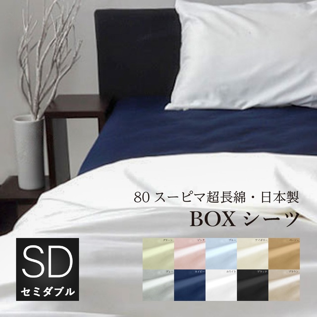 ボックスシーツ セミダブル 120×200×40cm 80番手スーピマ綿 天地ゴム入り 日本製 厚み35㎝以下対応
