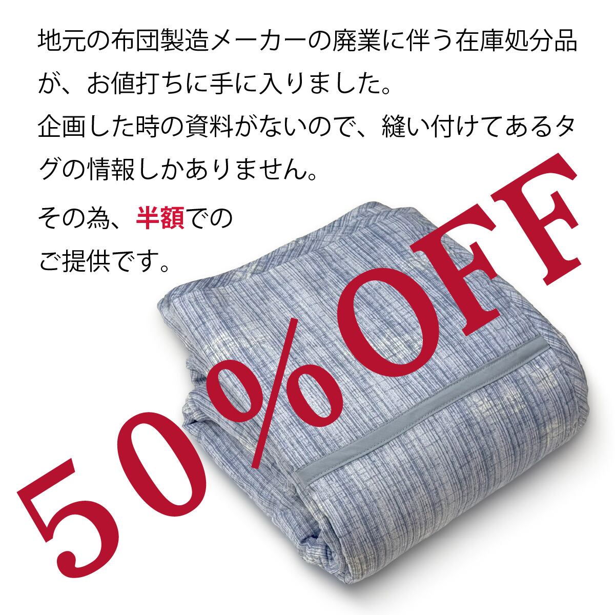 地元滋賀県の布団製造メーカーの廃業に伴う処分品が値打ちに手に入りました。