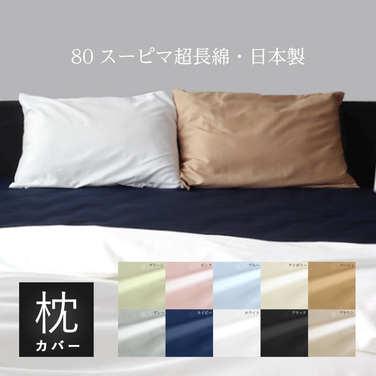 80番手スーピマ綿 枕カバー 封筒式 Mサイズ ピロケース 45×90cm