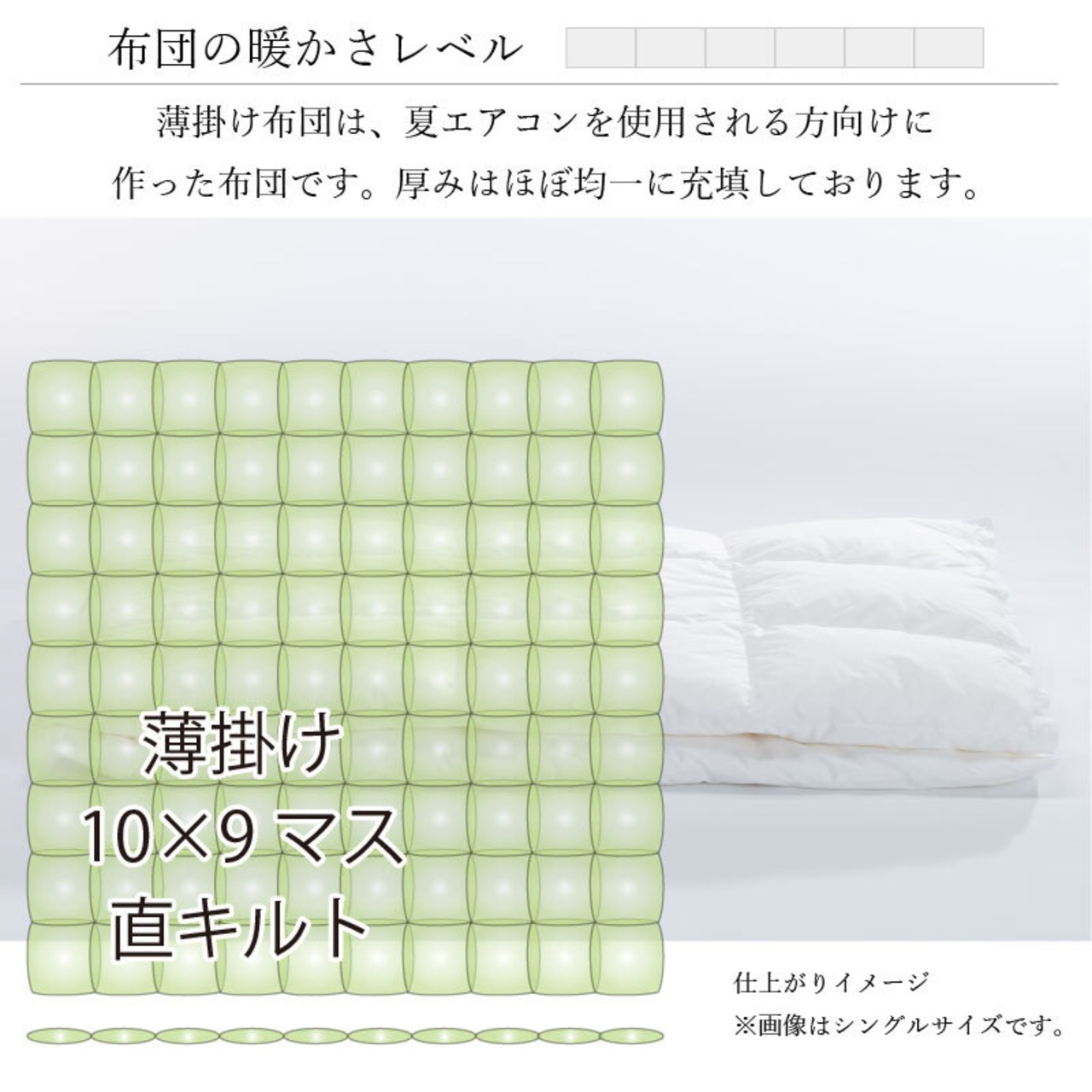 ◇レギュラー羽毛掛布団の4分の1の厚み