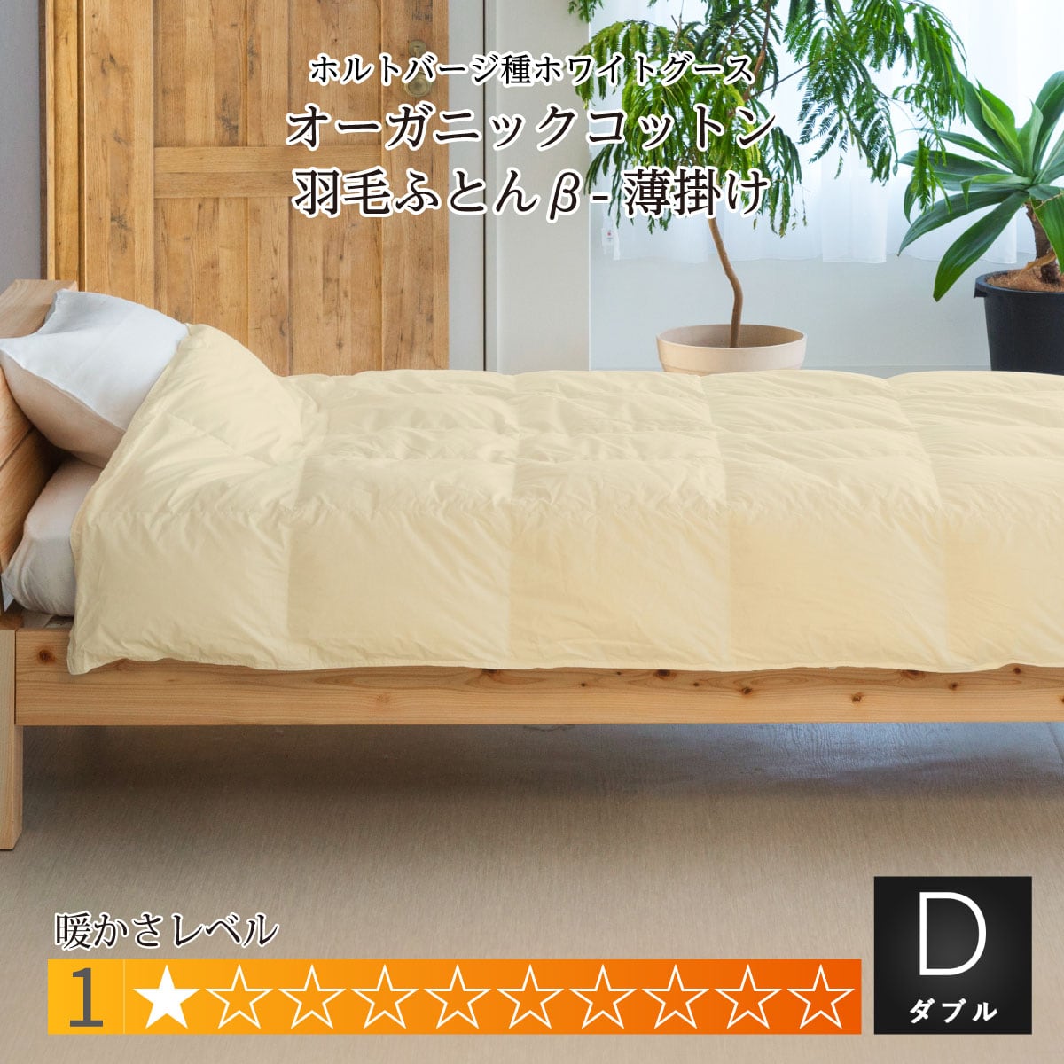 オーガニックコットン羽毛布団β(ベータ) 薄掛け 夏エアコン使用 ダブル:190×210cm TE135G-KWG93