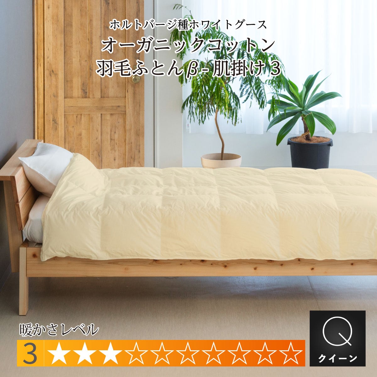 オーガニックコットン羽毛布団β(ベータ) 肌掛け 初夏〜夏用 クイーン:210×210cm TE135G-KWG93