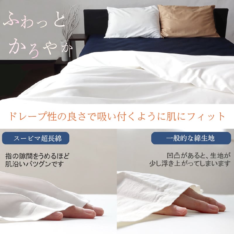 掛ふとんカバー ダブルロングサイズ 190×210㎝ やわらかい 80番手スーピマ綿 日本製 8か所ボタンテープ付き