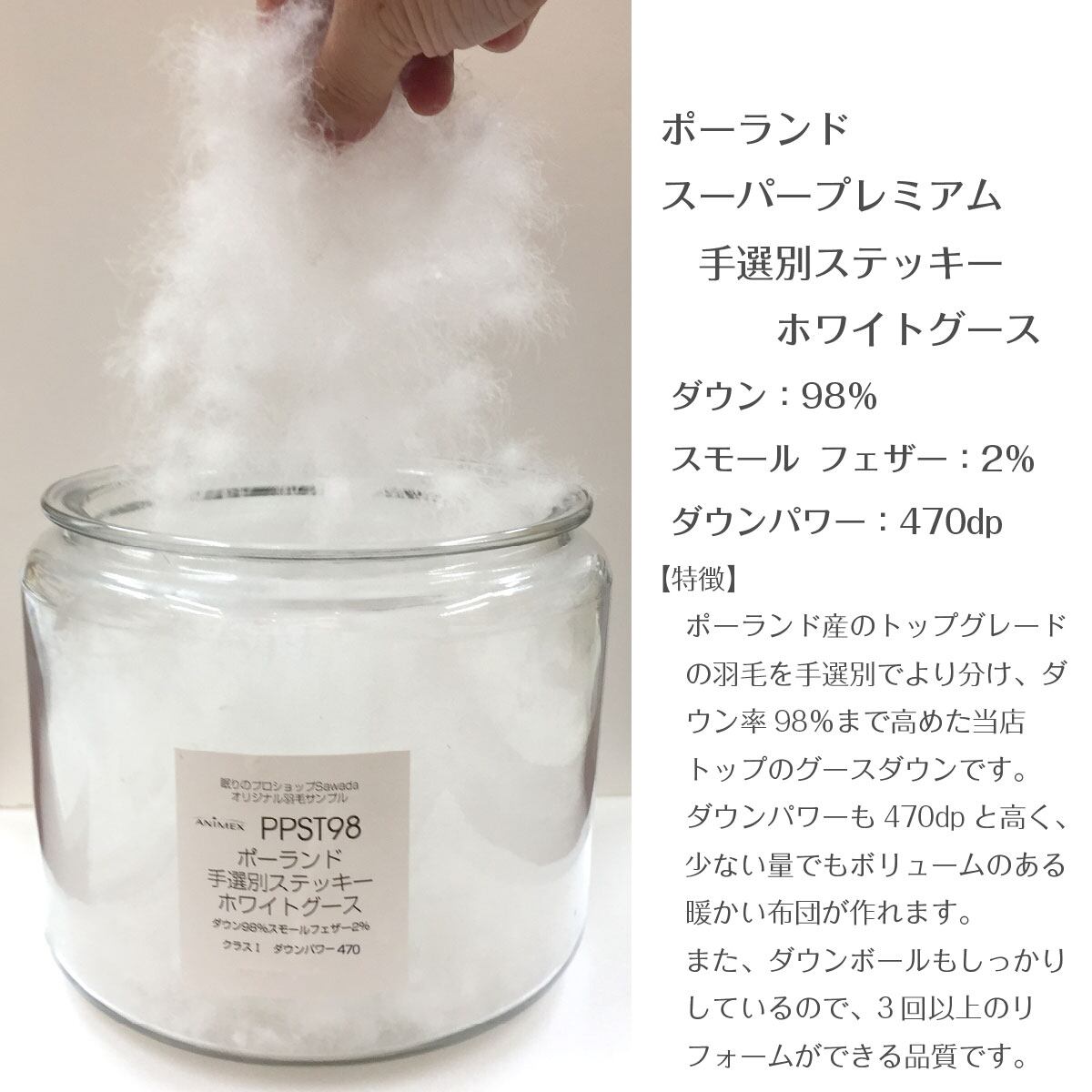羽毛 :ポーランド産 手選別ホワイトグース(マザーグースクラス)
