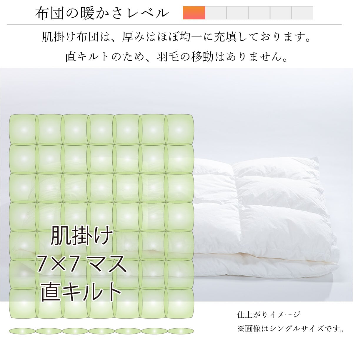 ◇レギュラー羽毛掛布団の4分の1の厚み
