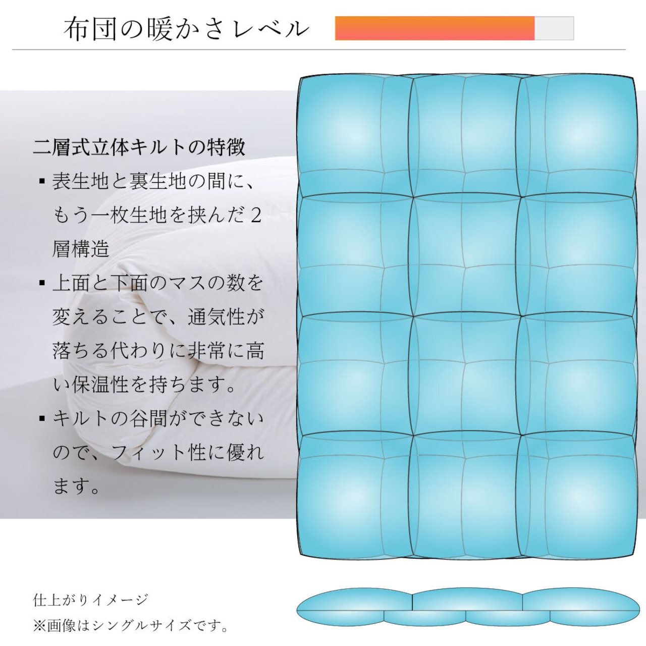 上部3×4、下部4×5の二層式キルトでふっくらと仕上がっています。