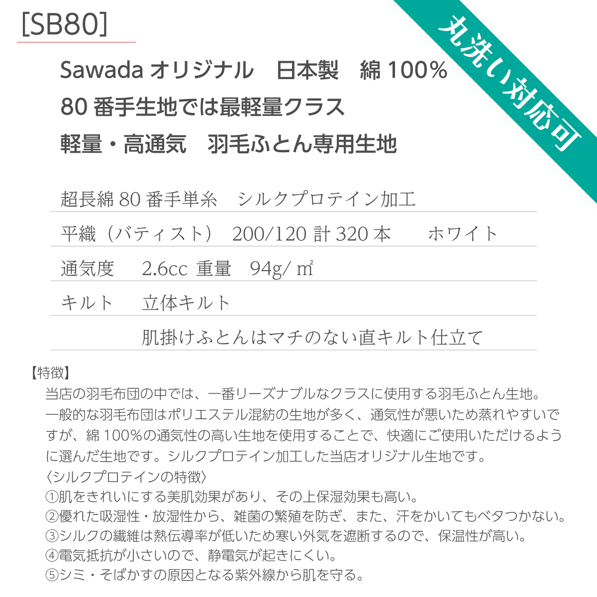 【CLASS:Ⅵ】羽毛布団 掛け 中厚 シングル 150x210cm SB80-KWG93