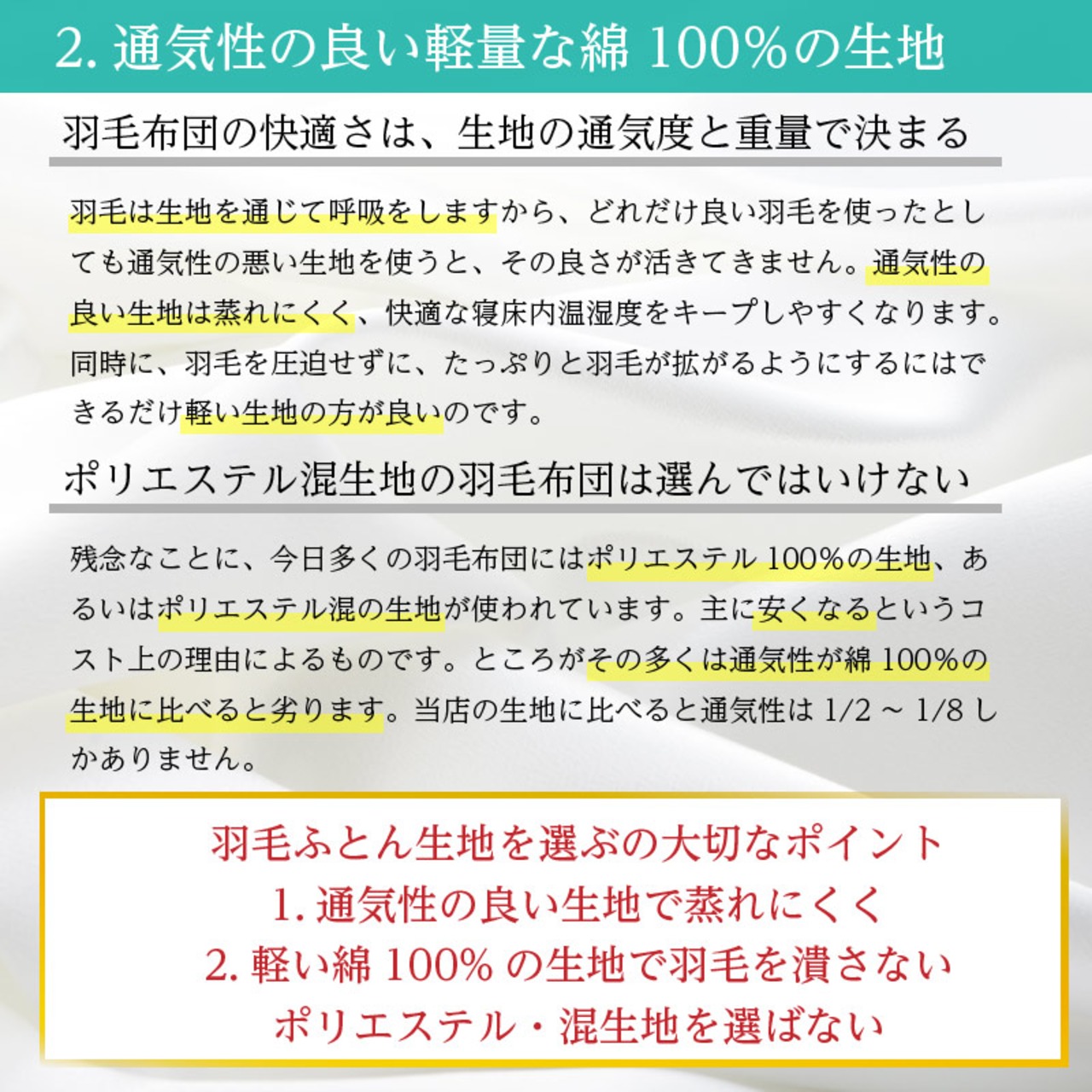 【羽毛ふとんの選び方はこちら】