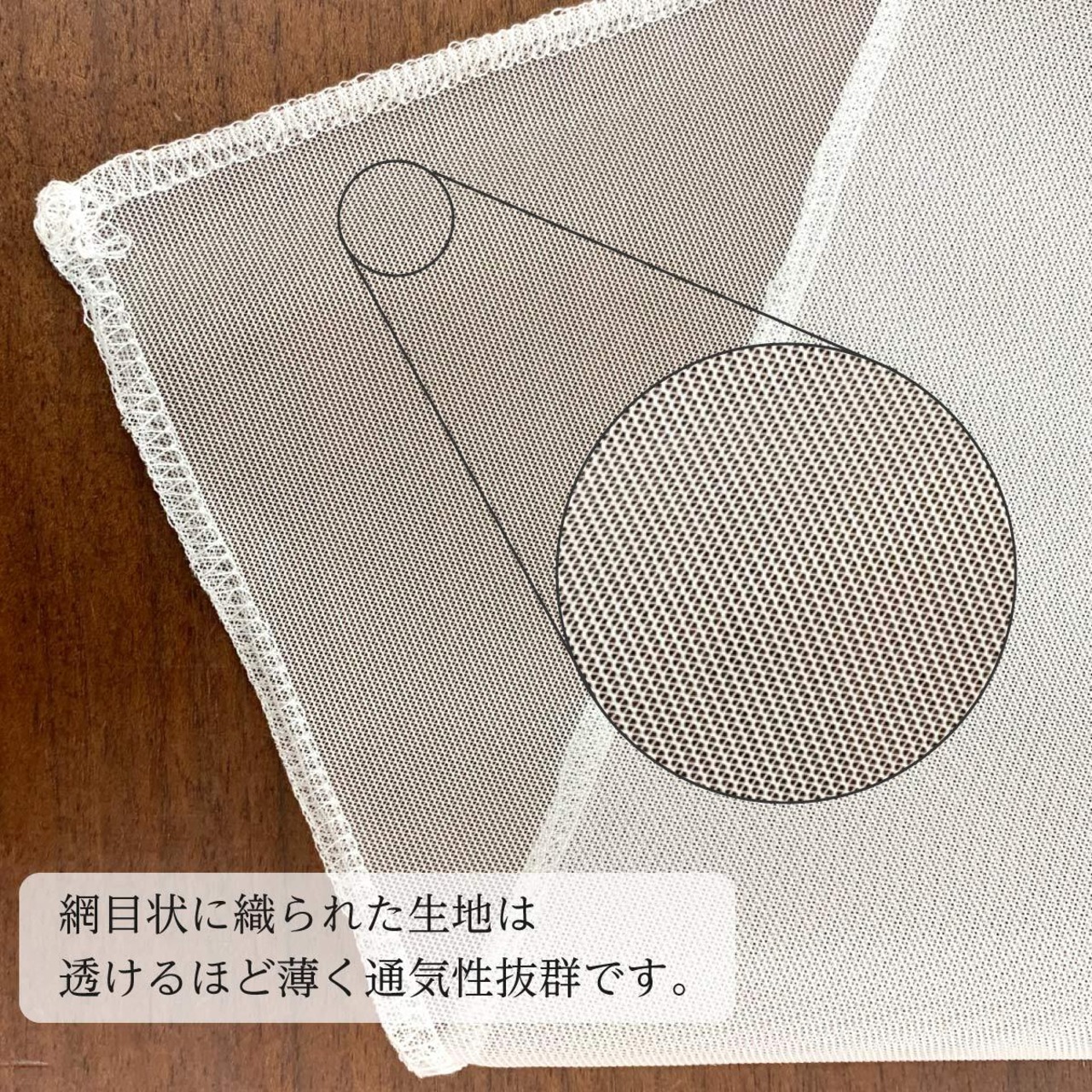 製品の端はオーバーロック加工していますが、カットしてもほつれることが無いので、自由な大きさ形状に切って使用することもできます。