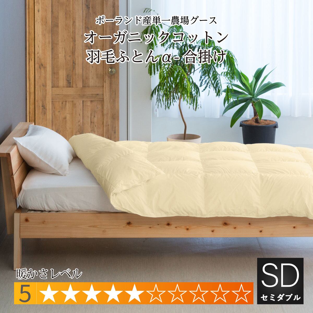 オーガニックコットン羽毛布団α(アルファ) 合掛け 中間期の季節・子供向け セミダブル:170×210cm TE135G-PKWG93