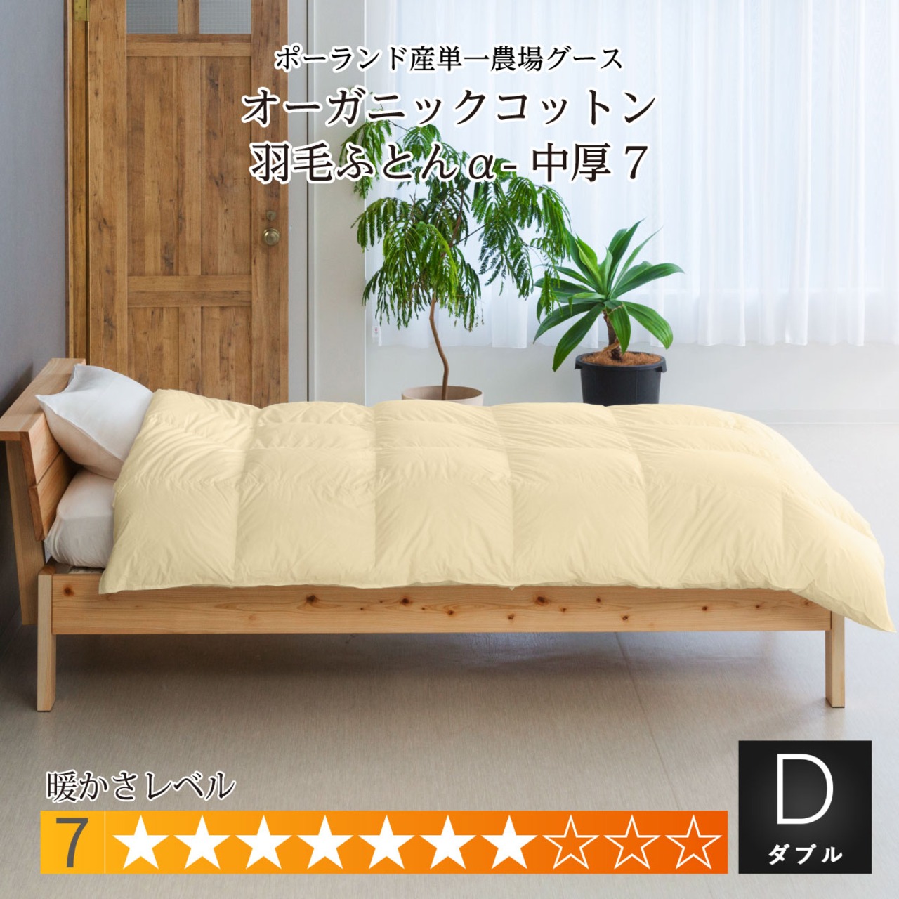 オーガニックコットン羽毛布団α(アルファ) 中厚掛け 都市部のマンション 暑がり ダブル:190×210cm TE135G-PKWG93