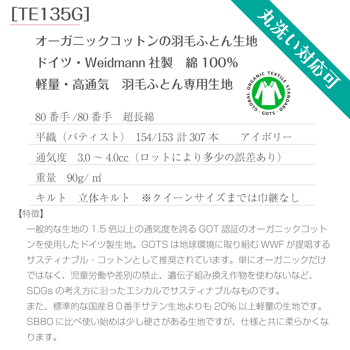 オーガニックコットン羽毛布団γ(ガンマ)中厚掛け 都市部のマンション 暑がり シングル 150x210cm TE135G-FPD93S