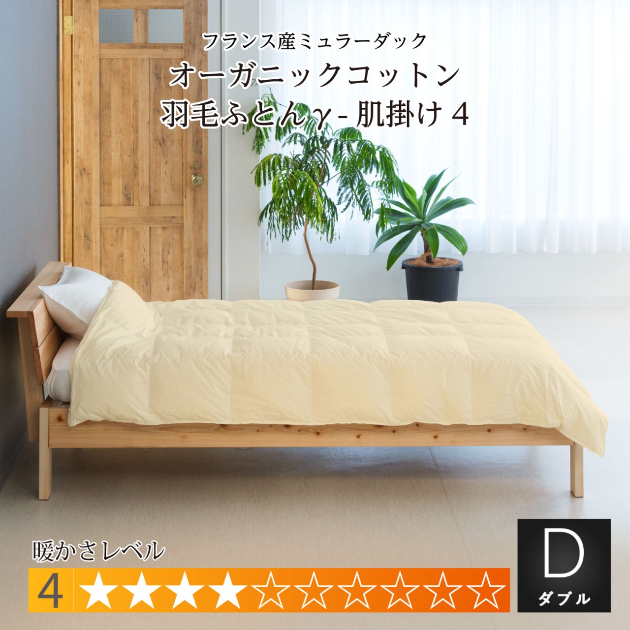 オーガニックコットン羽毛布団γ(ガンマ)肌掛け+ 初夏〜夏用 寒がりの方向け ダブル:190×210cm TE135G-FPD93S